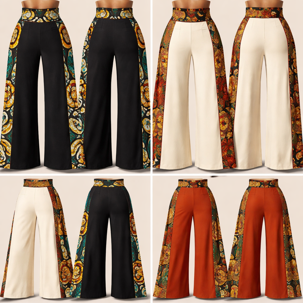 Create 3 different palazzo pants made with 20% Ankara and 80% plain material