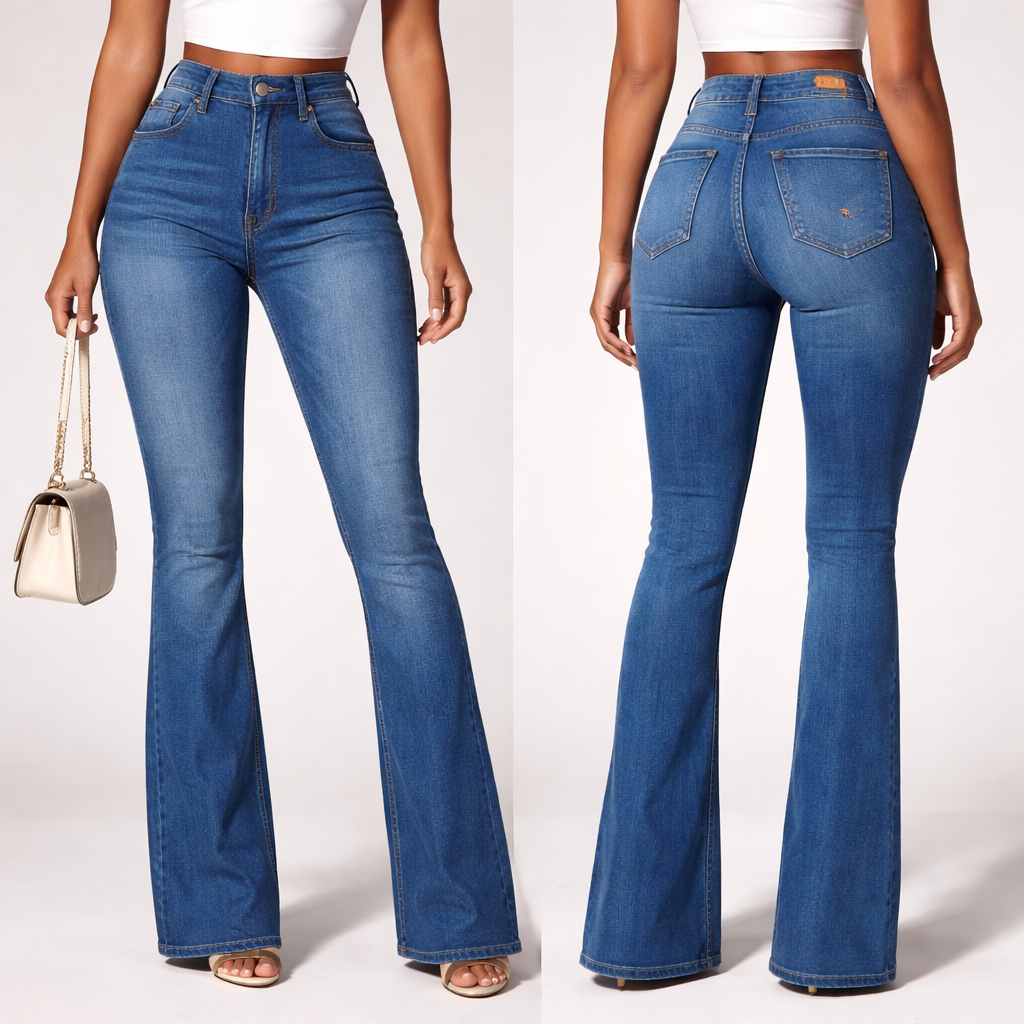 Jeans in the style of Zara and Fashion Nova, long, high waisted and which give beautiful shapes. With a very qualitative side like the luxury brand Geandes, classic style, show front and back