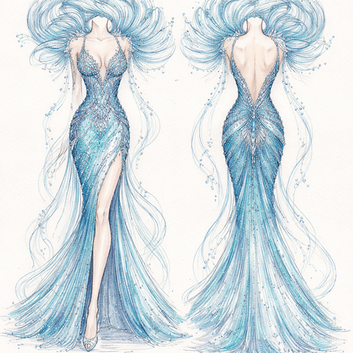 I want the dress to have a very detailed dress that’s slim with this wave type of thing behind the head part and I want ...