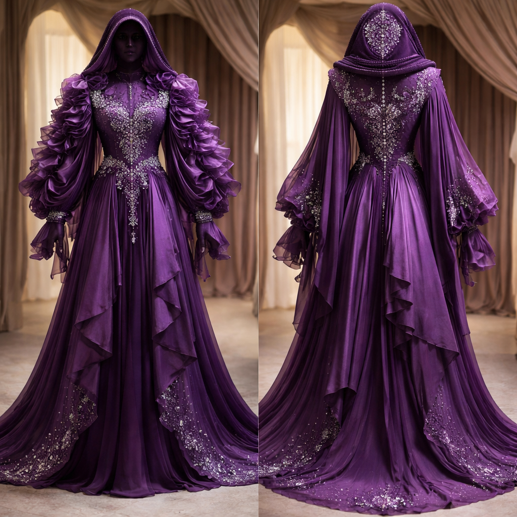 Design abaya that no one has ever sow or wear before in color purple