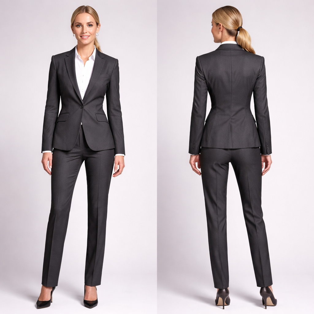 Suit conservative , business style, show front and back