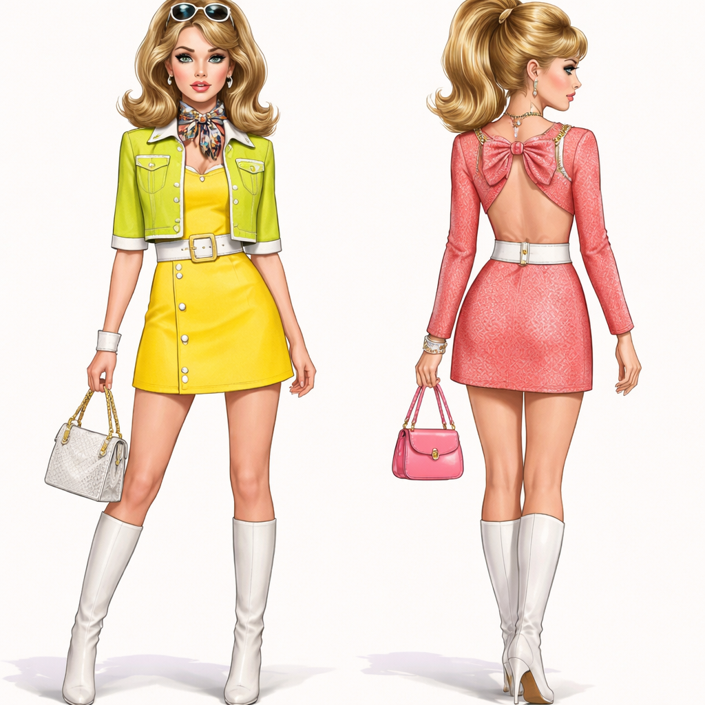 60’s new fashion design for stylish women mixed looks , retro style, show front and back