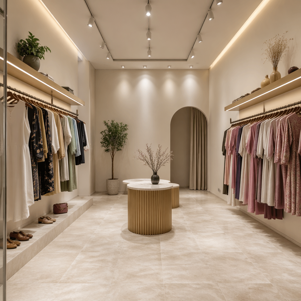 photorealistic fashion design, The shop in 470sqft, just the design no text