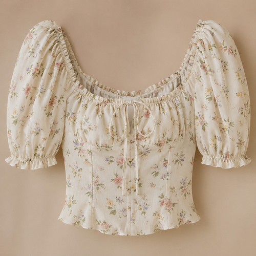 A Female Top design, suitable for Spring, in Cottagecore style. SY fashion aesthetics.