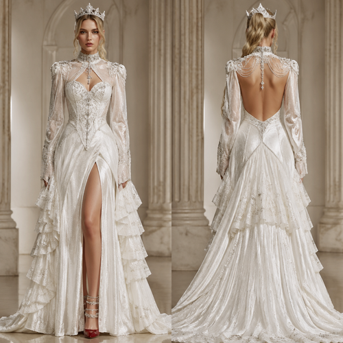 A Dress design, made of Velvet, for Wedding, suitable for Summer, in Lolita + Baroque + Futuristic style. white water fa...