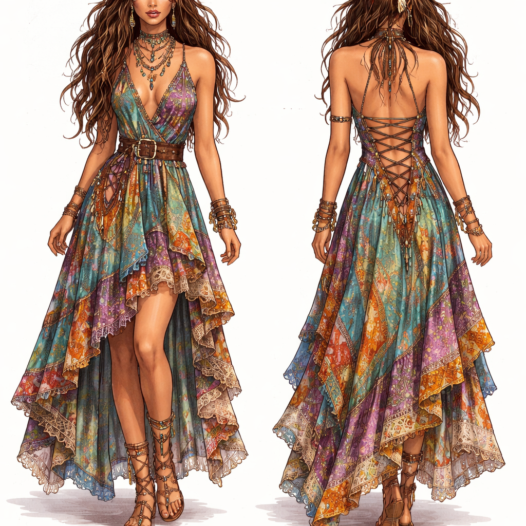 Make me a red and crimson dress with silver accents and a long slit up the right leg it should have a thick silver diam...