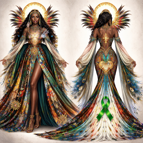 Create me a Women’s Unique Alien wear design dress. It should be a high fashion design. It should be below the knees (mi...