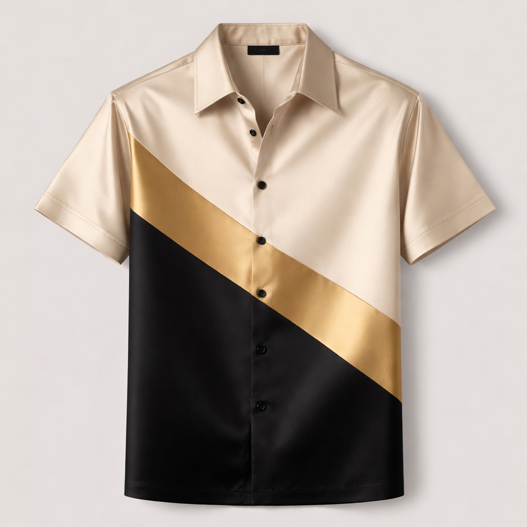 Casual shirt of gold, black and champagne colours, minimalist style