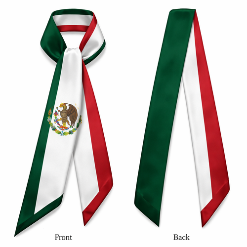 Design a silk twilly using the Mexican national flag. Keep it longitudinal stripes