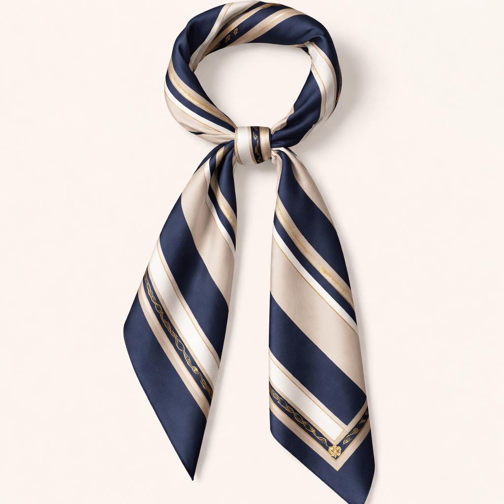 Design a silk scarf 5x86cm that goes with almost everything. More casual and sporty, classic style