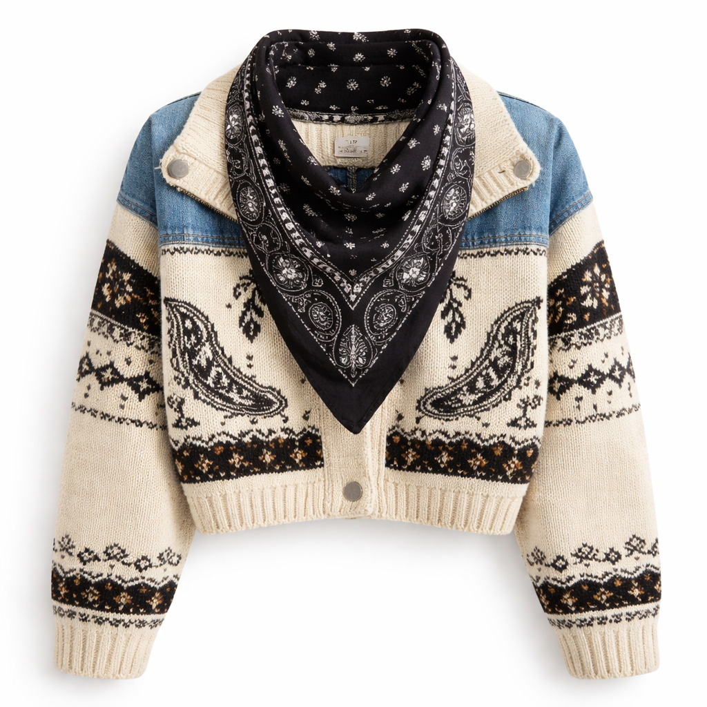Jacket knitted top that has a bandanna attached to it that falls naturally on a design in this part of the desire when the banana is not used