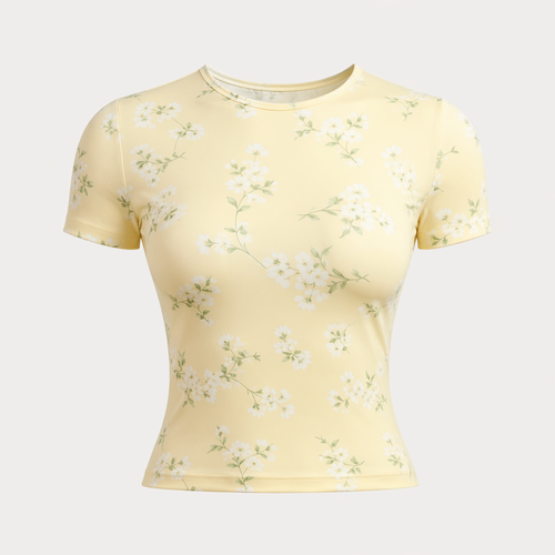 A Unisex fashion design, in Classic style. A pastell yellow top with white flowers. Seamless, everyday use, can absorb s...