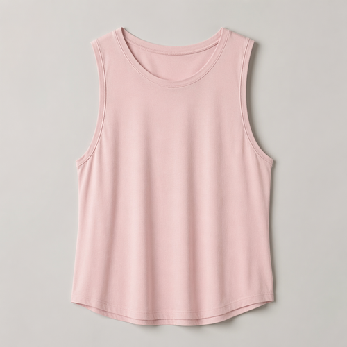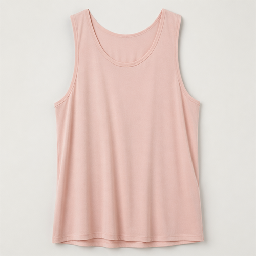 photorealistic fashion design, A Unisex Top design, in Classic style. Loose tanktop, pastell pink, soft fabric, everyday...