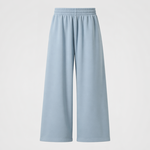 A Unisex fashion design, in Casual style. Seamless, pull-on wide sweatpants. Pastell blue. Everyday use, comfortable, so...