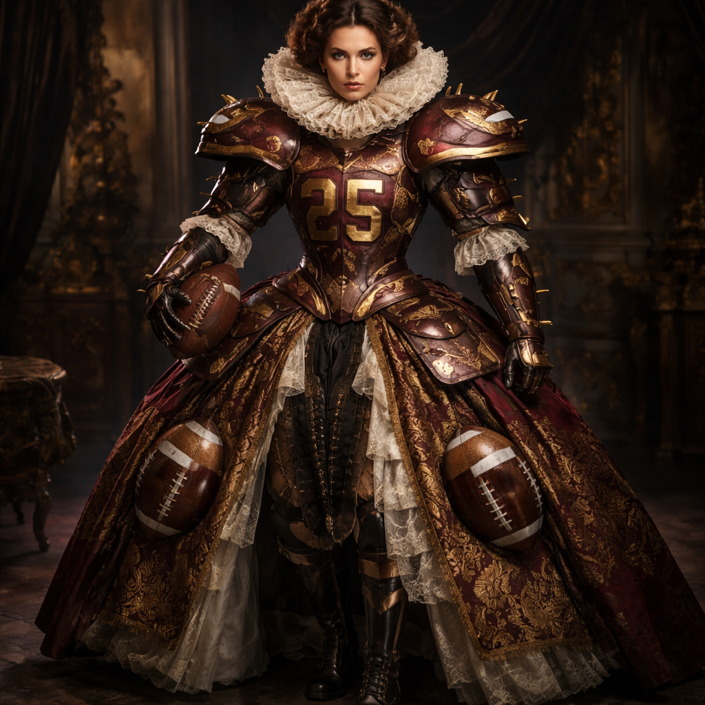 Spanish Baroque 1635s dress mixed with American football suit