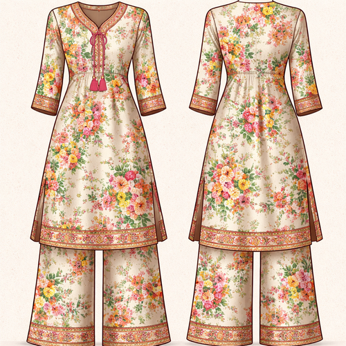 "Design a luxurious and feminine outfit, pastel colors, lace details, elegant silhouette"