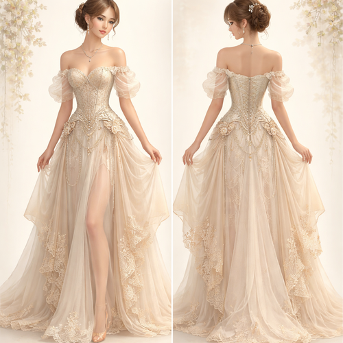 A Female Dress design, for Formal, suitable for Spring, in Vintage + Old Money + Korean Fashion style. корсет,украшения ...
