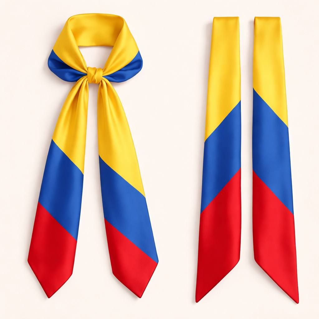 Design a silk twilly using the Ecuador national flag. Keep it longitudinal stripes. With no logos just the colors , classic style, show front and back