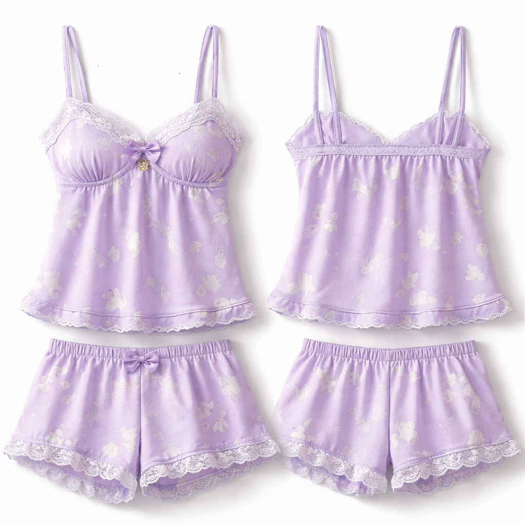 Make cute purple pjs , show front and back
