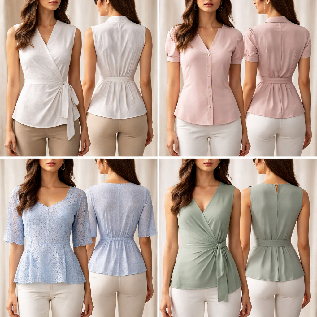 I want to design a summer collection for Indian girls and women. Western wear tops which can be worn in corporate settings and also casual. , western style, show front and back