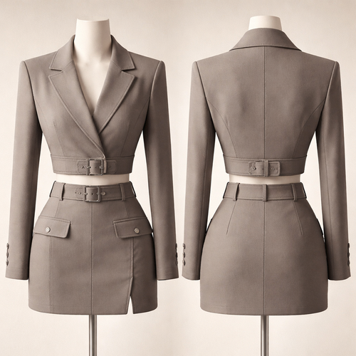Create me an outfit with 72% polyester, 24% rayon, and spandex 4% 280 gsm. Suit 2 piece