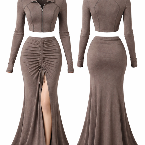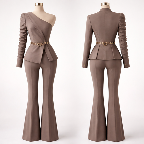 Create me an outfit with 63% polyester, 34% rayon, and spandex 3% 260 gsm. Suit 2 piece