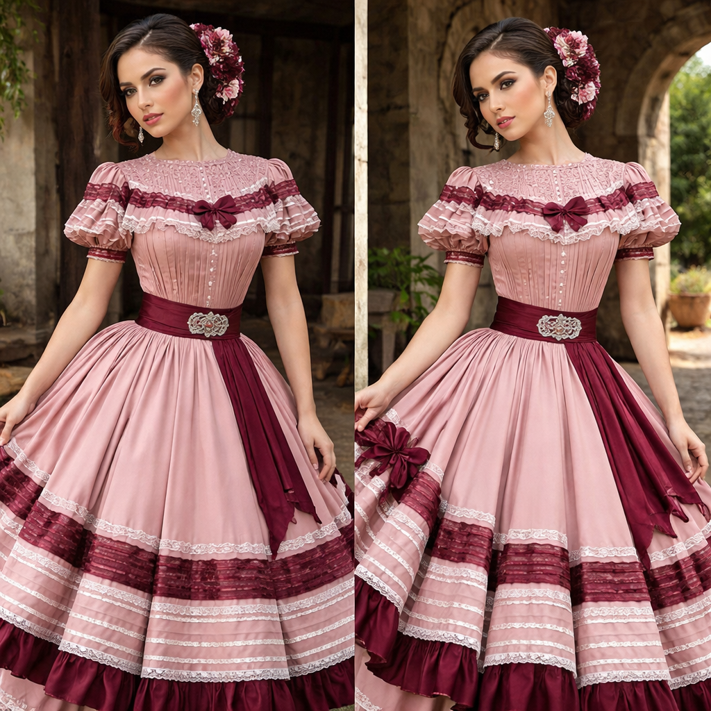 Vestido de escaramuza color palo de rosa con vino en blusa alforzas para un buen cuerpo . Otro diseño misma instrucción