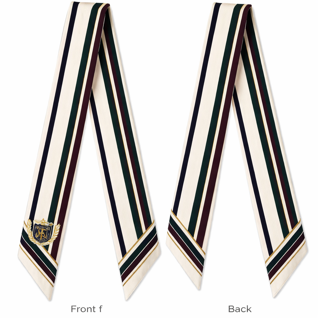 Design a silk scarf that is 5x86cm that has an IVY League feel for a feminine look but more simple with longitudinal lines