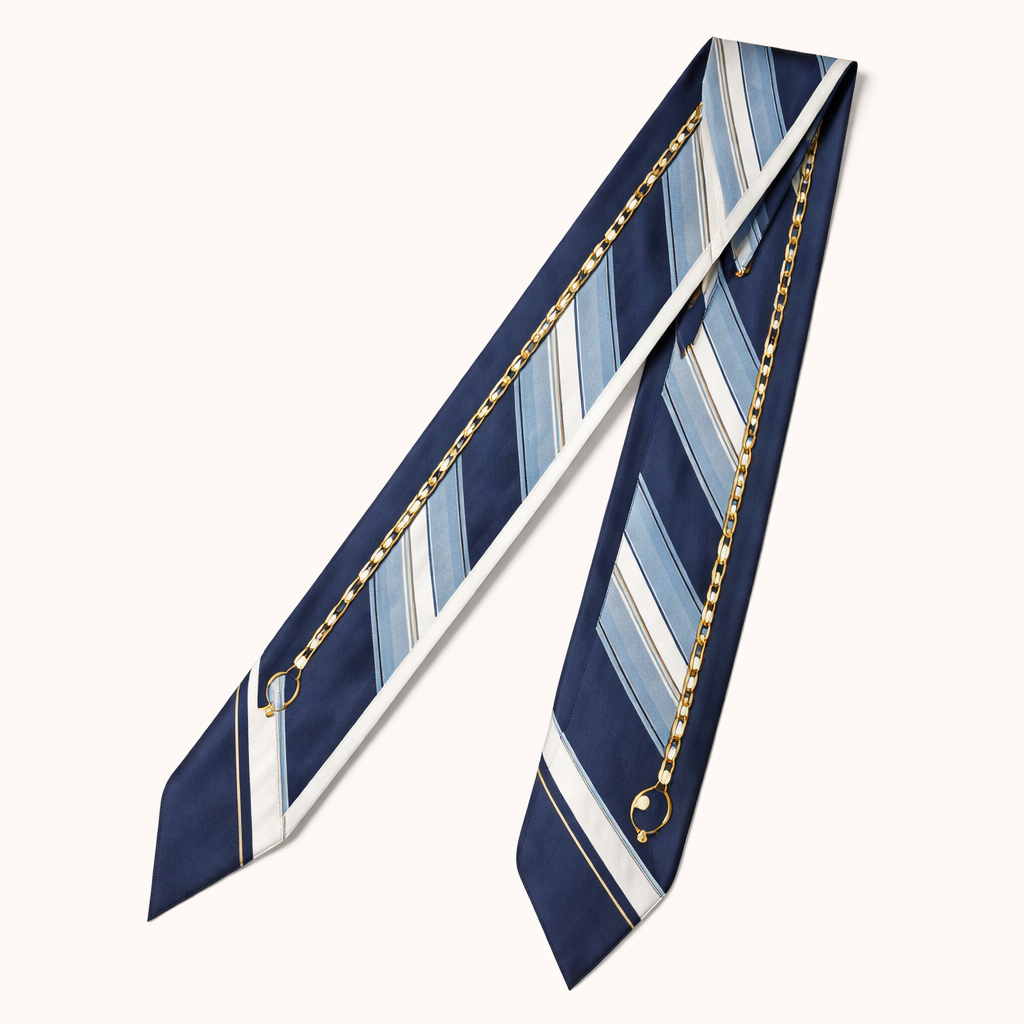 Design a 5x86cm silk scarf. Classic, elegant. Simple iconic pattern using different shades of 1 or 2 colors. Oblique edges.
