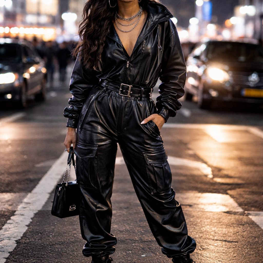 Tuta over streetwear da serata in pelle