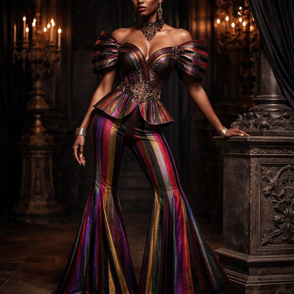A one of a kind top and pant using coloful aso oke that looks elegant and sophisticated with a classic look, gothic style