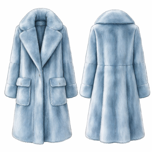 Create a sketch of a blue mink coat Trent style with patch pockets