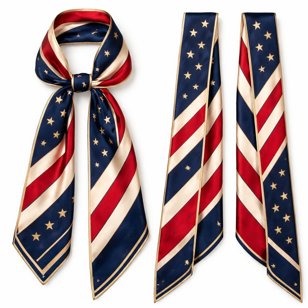 Design a silk twilly scarf that is 5x 86cm that is for the United States of America’s 250th birthday. No words or logos. Ralph Lauren vibe. Way simpler. Even more simple.