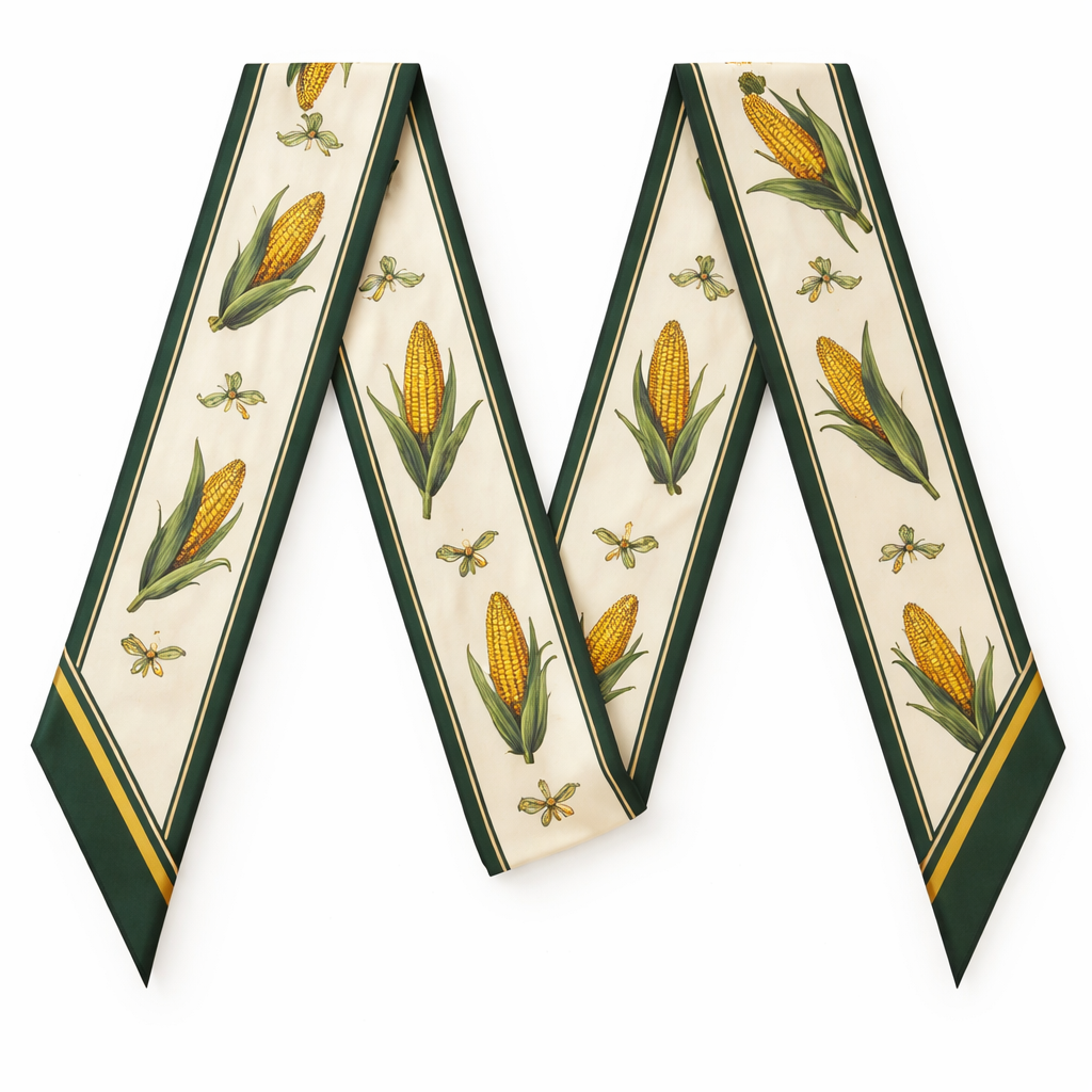 Design silk twilly 5x86cm with oblique edges Super simple and tailored corn pattern. With a Ralph Lauren look but a feminine touch