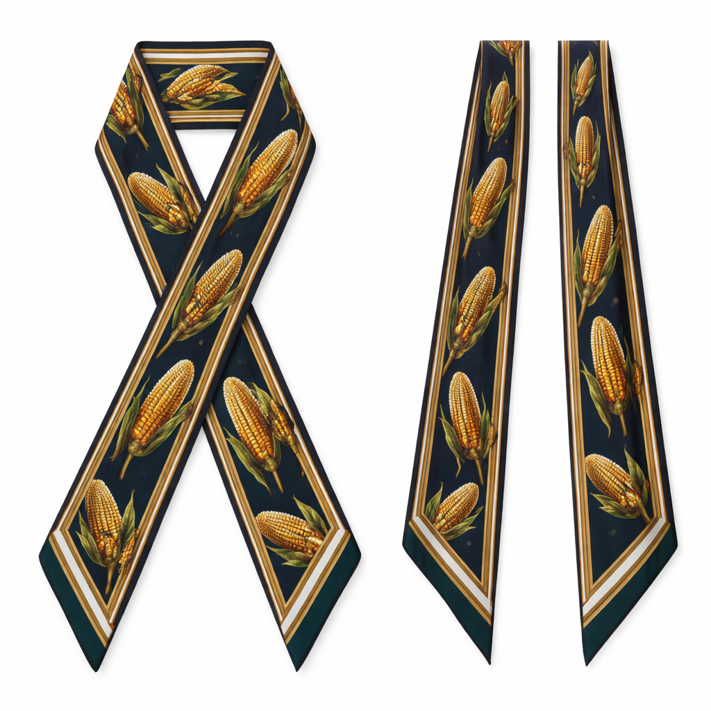 Design silk twilly 5x86cm with oblique edges Super simple and tailored corn pattern. With a Ralph Lauren look, classic style, show front and back