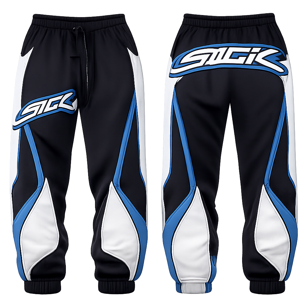 Pants with sick logo, sporty style, show front and back