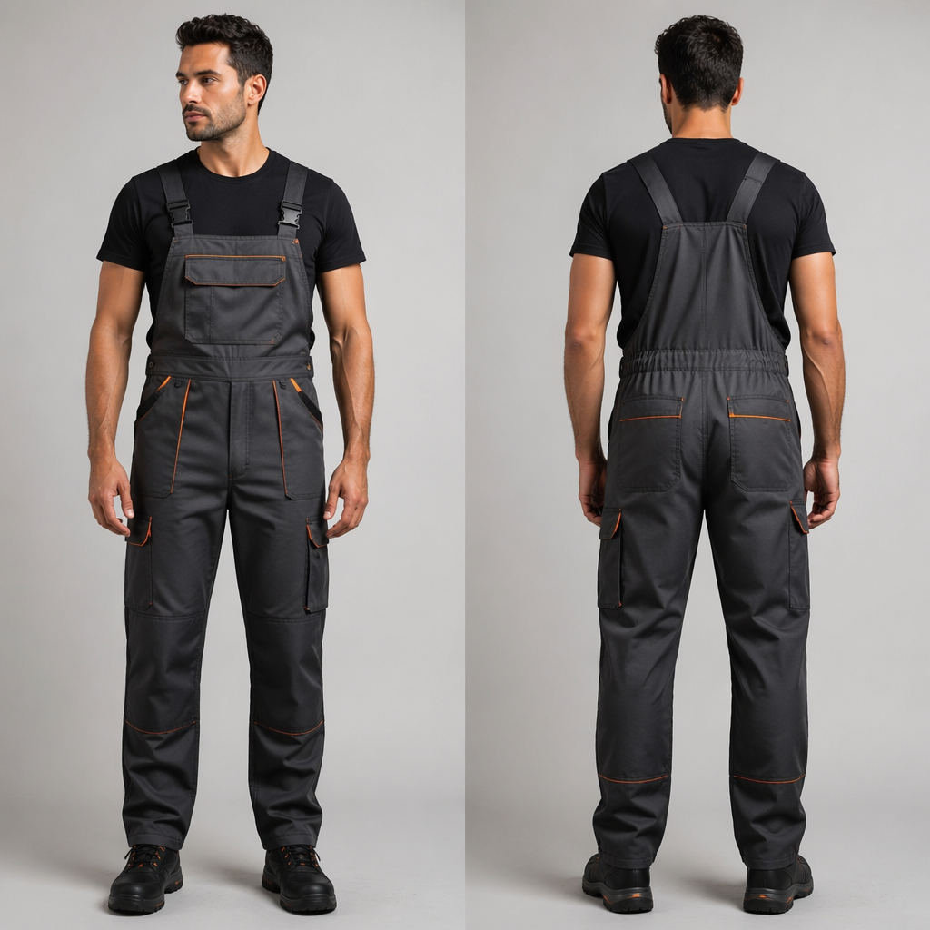 photorealistic fashion design, يونيفورم فنيين صيانة بدلة بحمالات. Egypt fashion aesthetics., just the design no text, show front and back