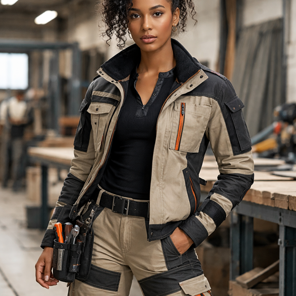 اريد تصميم يونفورم لشركة بناء تي شيرت كحلي غامق به خطين عند الصدر واحد سماوي وواحد ابيض وبنطلون كارقو ب ٦ جيوب ٣ يمين و٣...