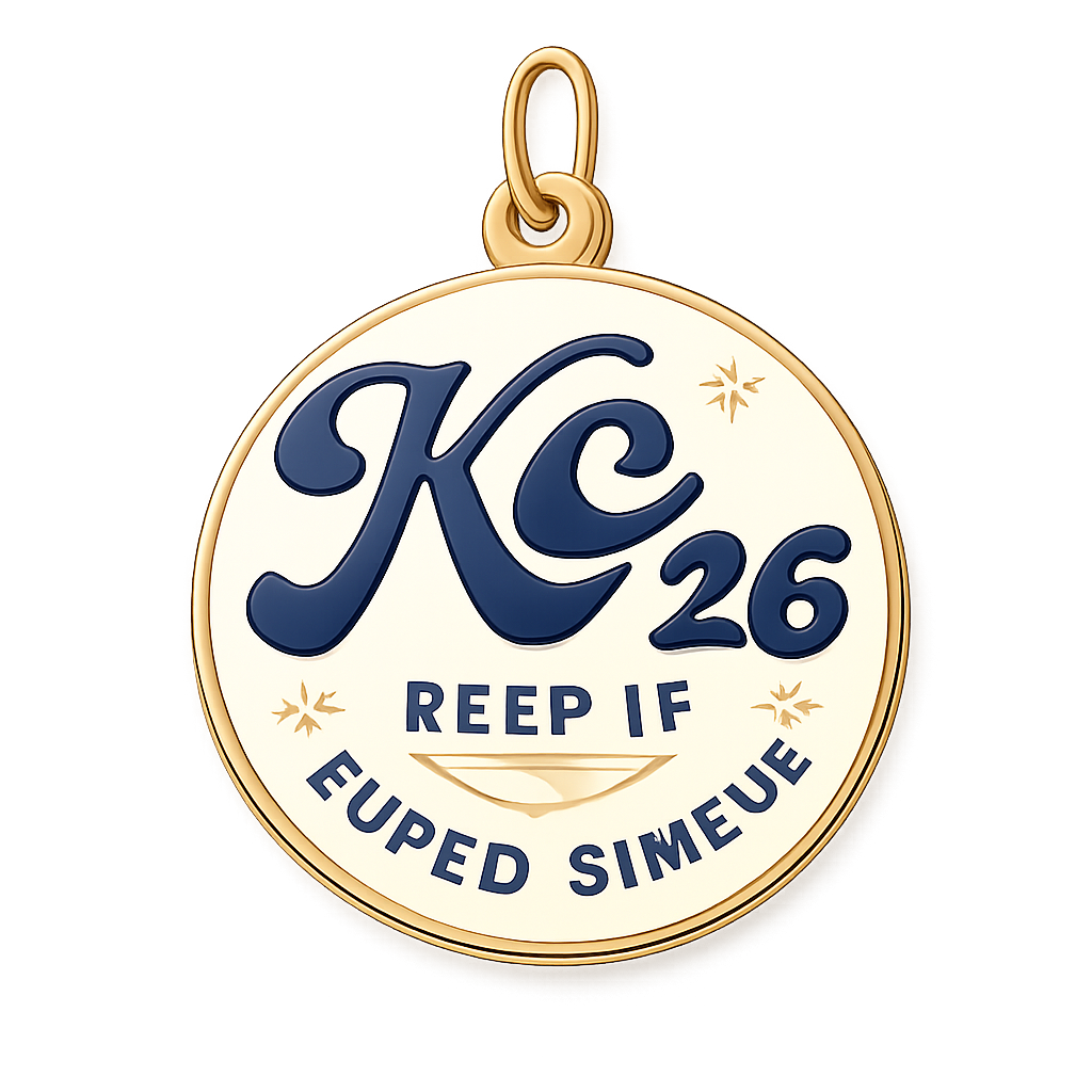 Design a 1 inch enamel charm that says KC ‘26 keep it super simple, classic style