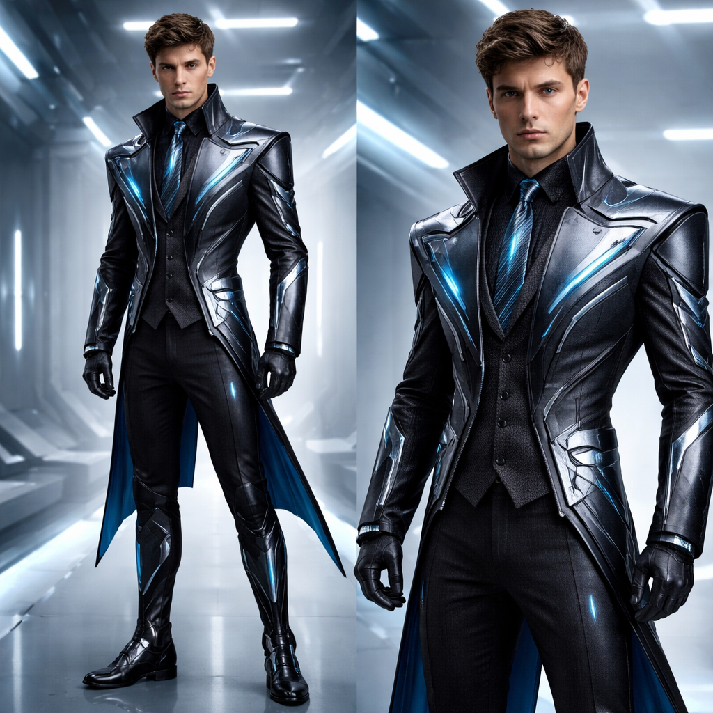 A Male Dress design, in Futuristic style, futuristic style