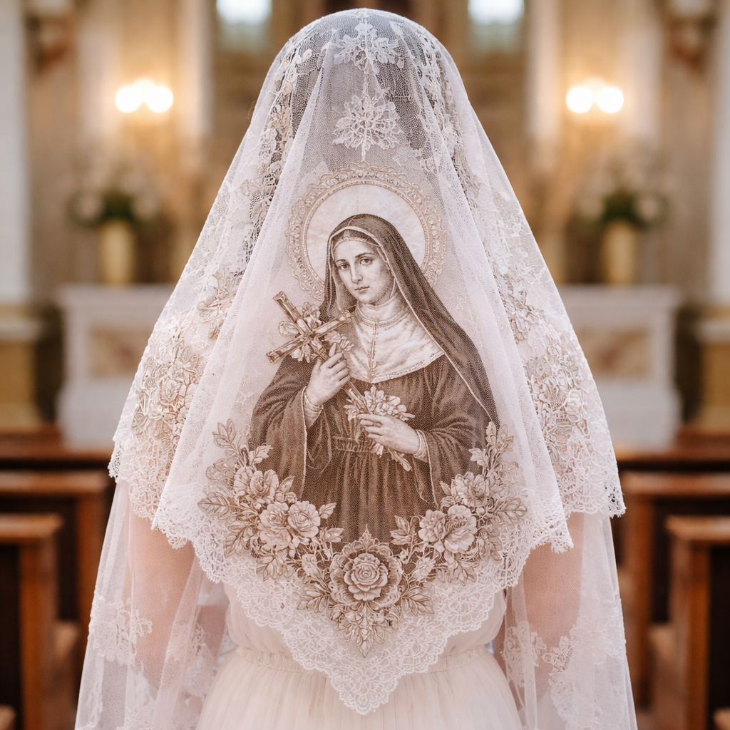Modern Holy church veil with nice print of st Rita one colour