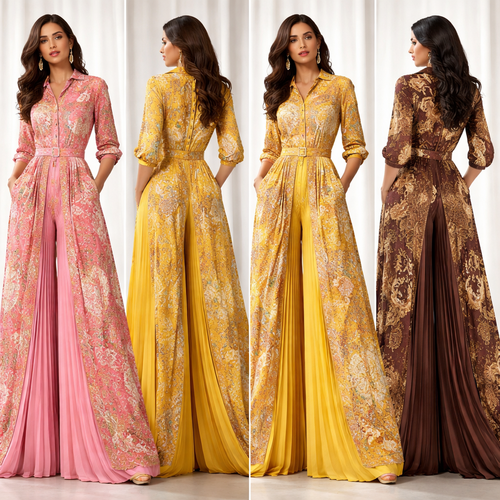 Dress Pockets Patterns Palazzo pleated vibes For tall structure In different colors: pink, yellow, brown