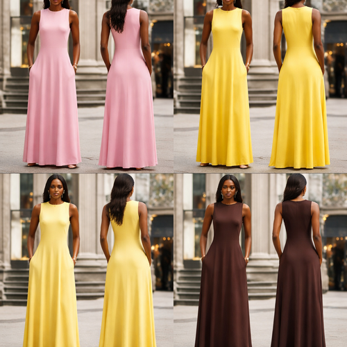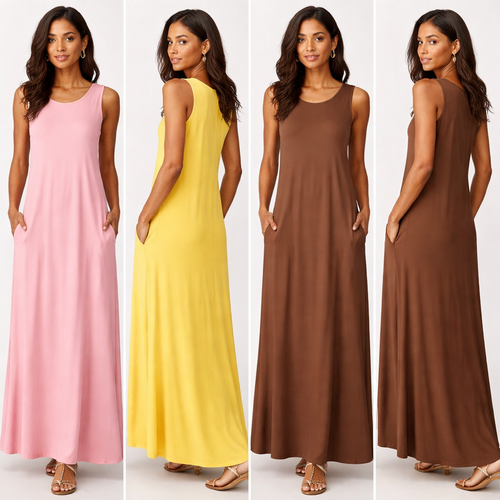 No jumpsuit Full length Dress Side Pockets Plain For tall structure In different colors: pink, yellow, brown