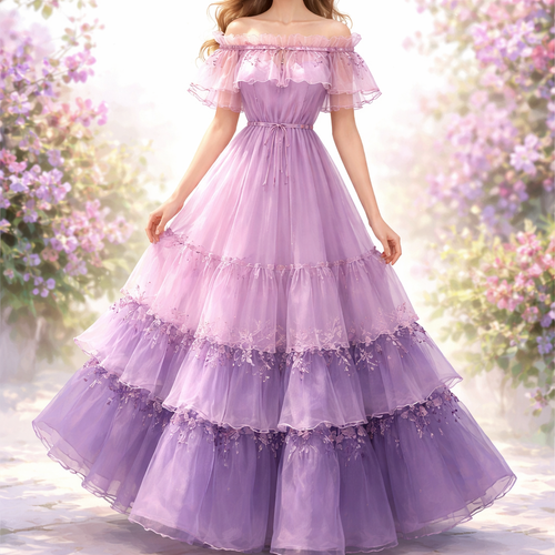 A Female Dress design, suitable for Spring. Long dress like clothes with three layers the lower layer is the darker colo...