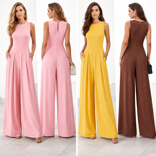 No jumpsuit Dress Pockets Plain Palazzo pleated vibes For tall structure In different colors: pink, yellow, brown