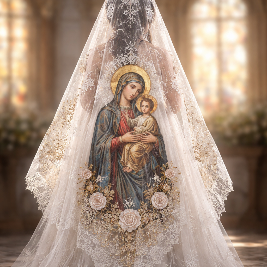 Modern Holy church veil with nice print of st Rita one colour