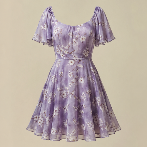 A Female Dress design, made of Chiffon, for Casual, suitable for Fall, in Casual + Cottagecore + Floral style. A simple ...