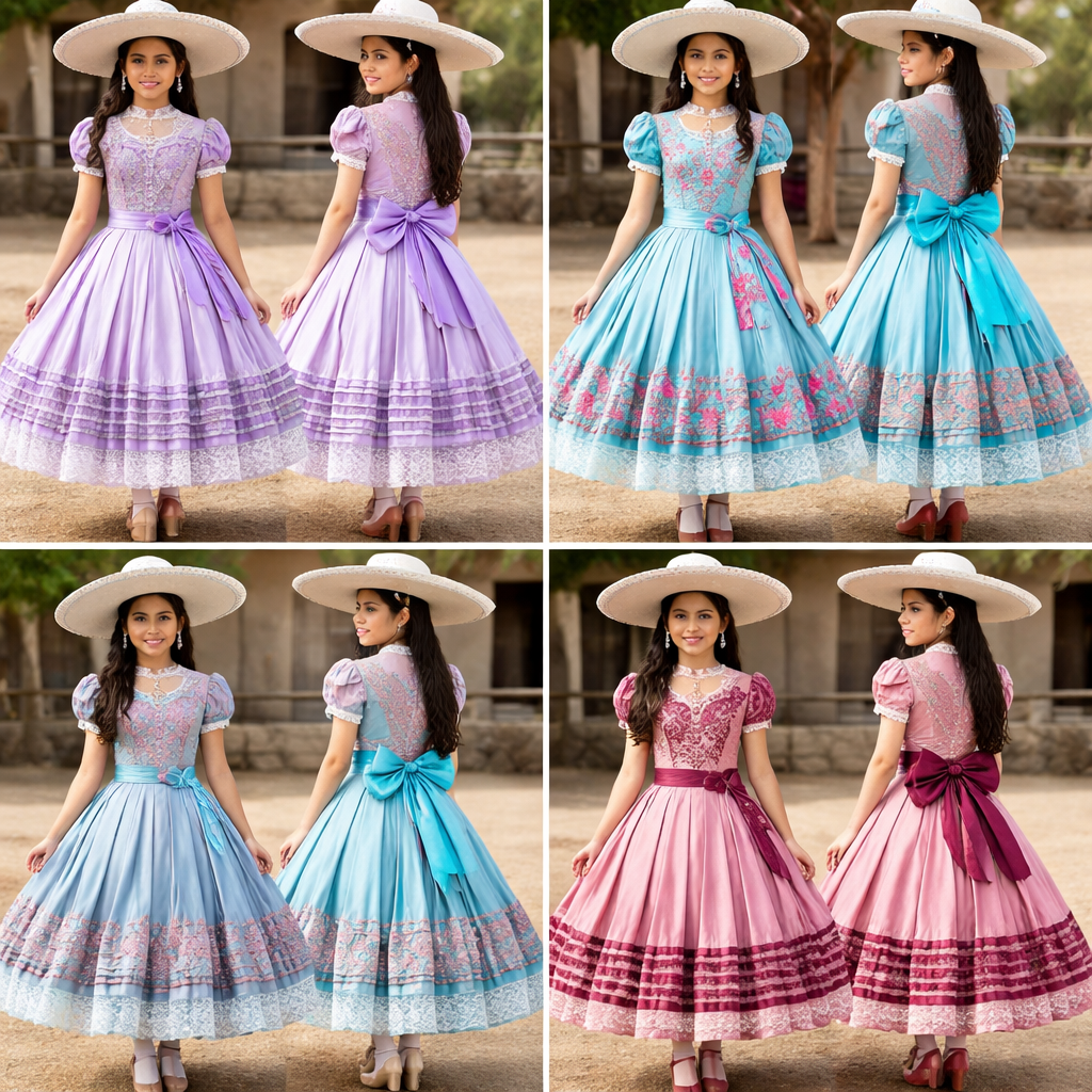 Vestido para Escaramuza charra según reglamento FMCH con te de cías de moda para niñas de 10-14 años de edad Otro modelo con alforzas y tablones o pasa listón Ahora para jovencítas de 13 a 15 años tres modelos Con diferentes estilos colores De moda . Vestido escaramuza charra con reglamento de FMCH para jóvenes de 13-15 años colores de moda En dnd se consiguen materiales , classic style, show front and back