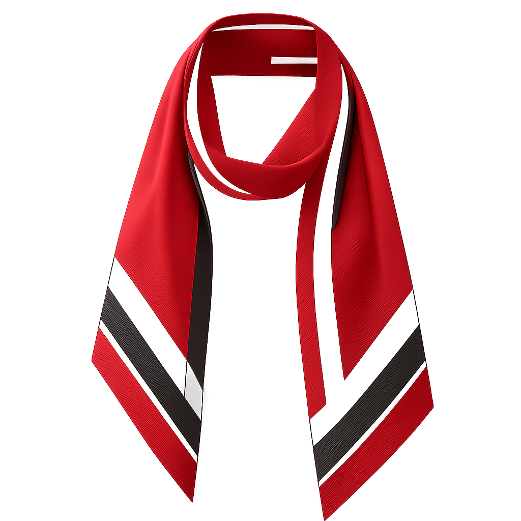Design a silk scarf that is 5x86cm that is Tunisia colors for their soccer team for the World Cup 2026. No logos just colors. Angled corners . Remove the gold , classic style