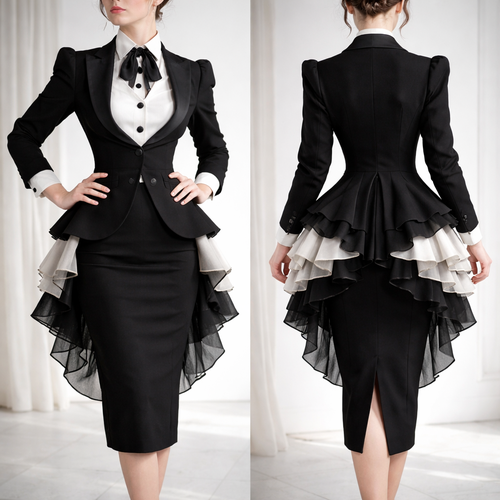 Real clothes, modern office wear, vintage bustle